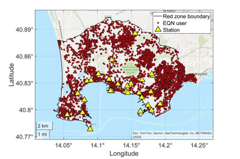 意大利那不勒斯附近的弗莱格雷火山口区域居住着约 50 万居民,同时属于高风险火山与地震带,成为测试这种新方法的理想场所。2024 年 4 月至 6 月期间,该区域地震活动加剧,给当地居民和管理者带来了压力。在面积 130 平方公里的 “红色警戒区” 内,有 7000 至 9000 名居民通过 EQN 积极贡献数据,而该区域内的传统地震观测站仅有 29 个。通过对这些数据的分析,研究人员绘制出了红色警戒区的首幅高分辨率震动放大效应图。