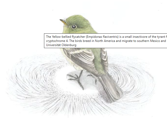 另一个有趣的发现是,在三个热带鸟类群——鹦鹉、蜂鸟和暴君鸟(Suboscines,也称为暴君)——中隐花色素4的信息在进化过程中丢失,意味着这些鸟类无法产生该蛋白。这表明这在它们的生存中并不起关键作用。然而,虽然鹦鹉和蜂鸟是定居的,但一些暴君是长距离迁徙鸟,像欧洲小型鸣禽一样,白天和夜晚都能飞行。