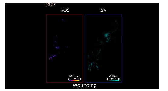 传感器检测植物用来协调应激反应的两种信号分子:过氧化氢和水杨酸(一种类似阿司匹林的分子)。研究人员发现,植物在不同类型的应激下,在不同时间点产生这些分子,形成独特的模式,可以作为早期预警系统。