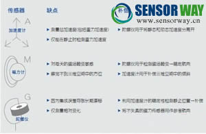 文章所描述的融合库使用加速度计、磁力计和陀螺仪传感器信号补偿彼此的缺点,并提供高精度、可靠和稳定的方位数据。下面着重分析这些关键器件的优缺点,以及它们是如何补偿彼此缺点的(图1)。