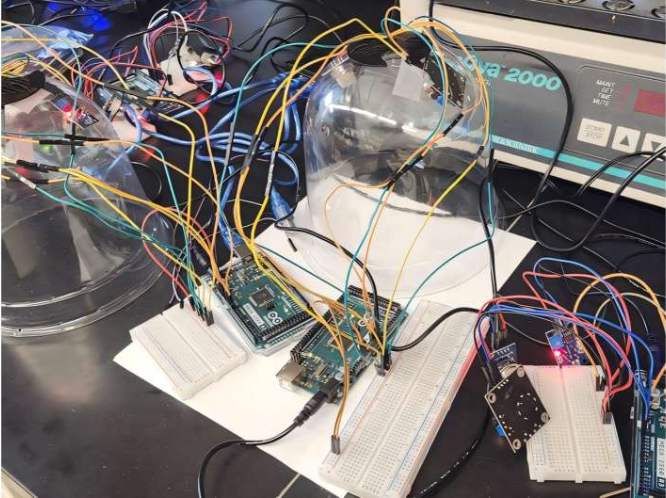 研究人员通过向养分溶液中添加两种不同量的氯化钠,诱发盐应激,形成中度应激组和强烈应激组。第三组植物——对照组——未接触盐。电厂被放置在穹顶外壳下,这些容器通过穹顶顶部的低成本气体传感器捕获释放的气体。这些传感器测量了植物释放的挥发性有机化合物引起的空气化学变化,持续了八天。