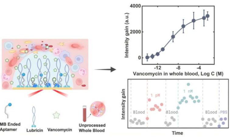 团队首次利用SERS检测未处理血液样本中的抗生素万古霉素,且连续暴露超过10小时内灵敏度未减。